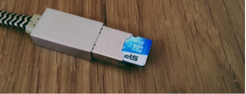 これはLightningケーブルにMicroSDカードリーダーが付いている製品です!